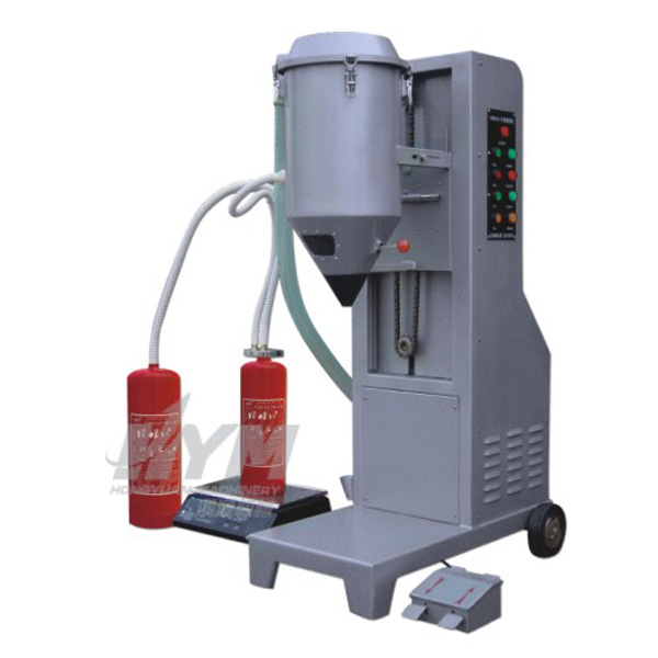 GFM16-1B型幹粉(fěn)灌裝機是我廠參照國內外粉(fěn)類灌裝機的優點,設計開發的新產品,本機采用真空射流技術,將幹粉(fěn)快速吸入(rù)貯粉筒(tǒng)並直接灌入被裝滅火器筒體(tǐ)內;也可(kě)將幹粉通過灌裝端蓋直接吸入被裝滅火器筒體內,並能把舊滅火器筒體內的幹粉直接回收。本機具有電動升、降貯粉筒功能,隻要輕輕踩住上升或下降踏板即可完成。並具有體(tǐ)積小,移動(dòng)方便(biàn),操作(zuò)簡單,對環境無汙染等優點,從而減(jiǎn)輕了勞動(dòng)程度,改善了工作環境,它能灌裝各(gè)種型號的滅火器筒(tǒng)體,也適用於各種粉類產品的灌(guàn)裝,是粉類灌裝行業較理想的設備(bèi)。